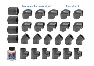 Hieronder vindt u een totaaloverzicht van allerlei soorten PVC voor de aanleg van uw zwembad. Tevens hebben wij complete aansluitsets met alle koppelstukken voor de aansluitng van uw filter, pomp en verwarming.