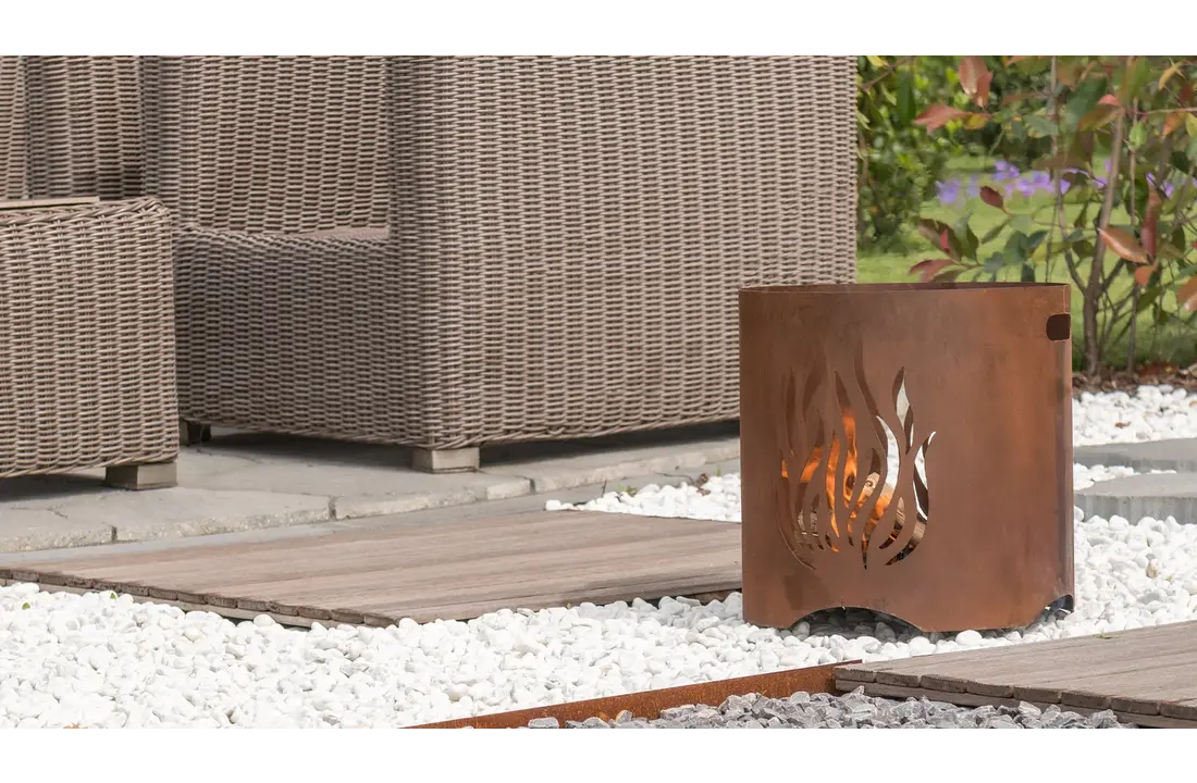 Deze robuuste vuurschaal Kiruna uit het assortiment van RedFire geeft een unieke sfeer aan je tuin of terras. Een praktische ruime vuurhaard, die met zijn cortenlook geschikt is voor vrijwel elke tuinstijl. De stoere roestkleur en de vlamvormige uitsnedes op de Kiruna zorgen voor een unieke combinatie. Het bijzondere is dat deze vuurhaard nog handgemaakt ook is.